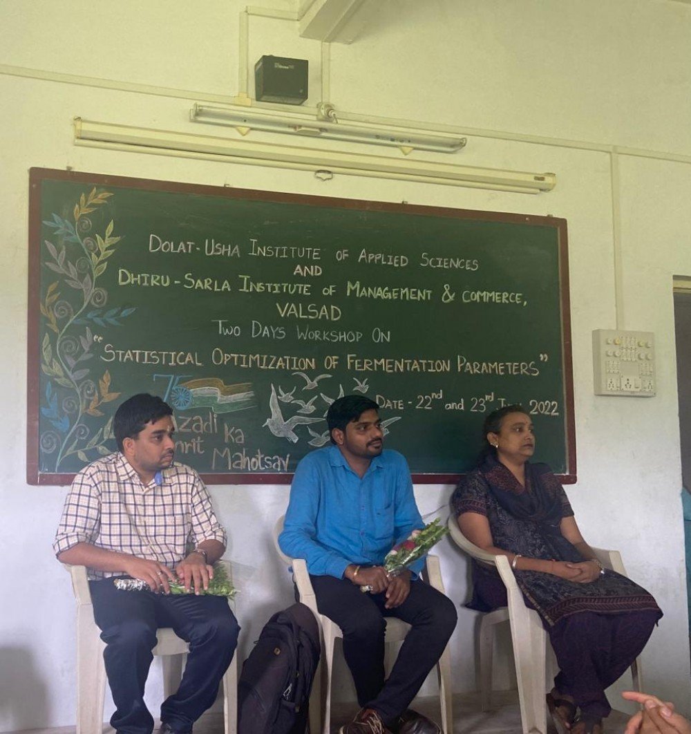 The aim of the workshop was to provide basic training in understanding the concepts of how to optimize fermentation parameters using stastical methods like Plackett-Burman Design and Response Surface Methodology. This statistical optimization methods help students to learn how to increase fermentation product yield manifold and to understand overall fermentation process economics. The workshop was held on 22nd and 23rd July 2022. The knowledge was delivered by Dr. Mayur Gahlout and Dr. Hiren Prajapati from KBS Commerce and Natraj Professional Sciences College, Vapi.