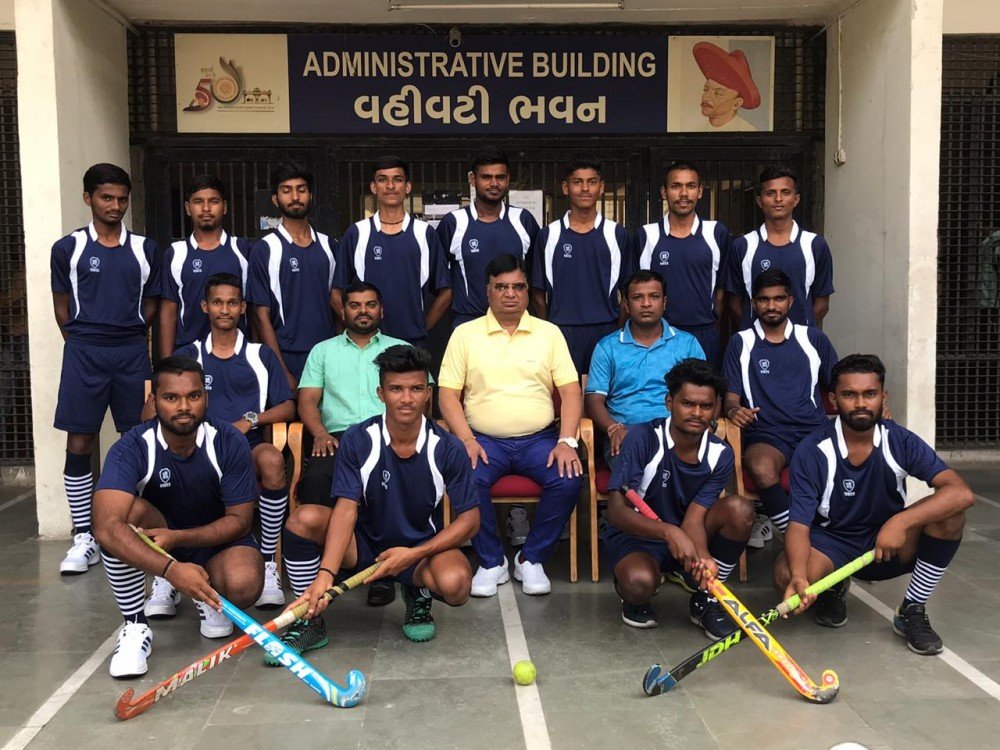 V.N.S.G.Uni. Hockey (M) Team, with Team Manager Prof.Bhavin Patel